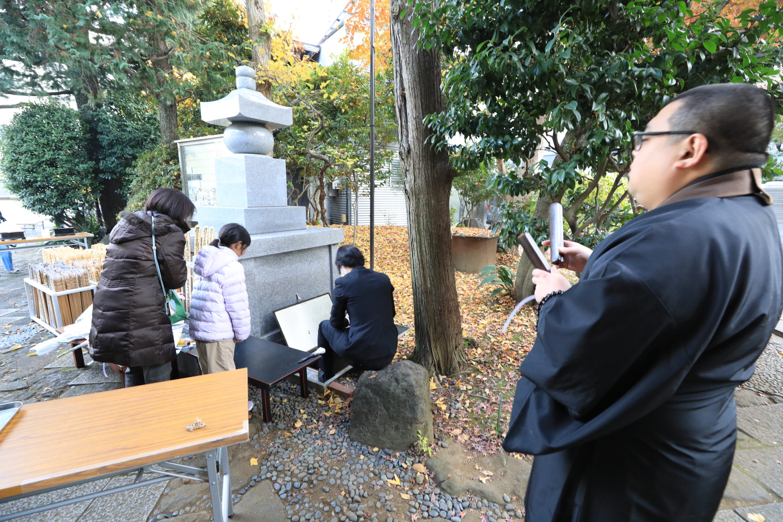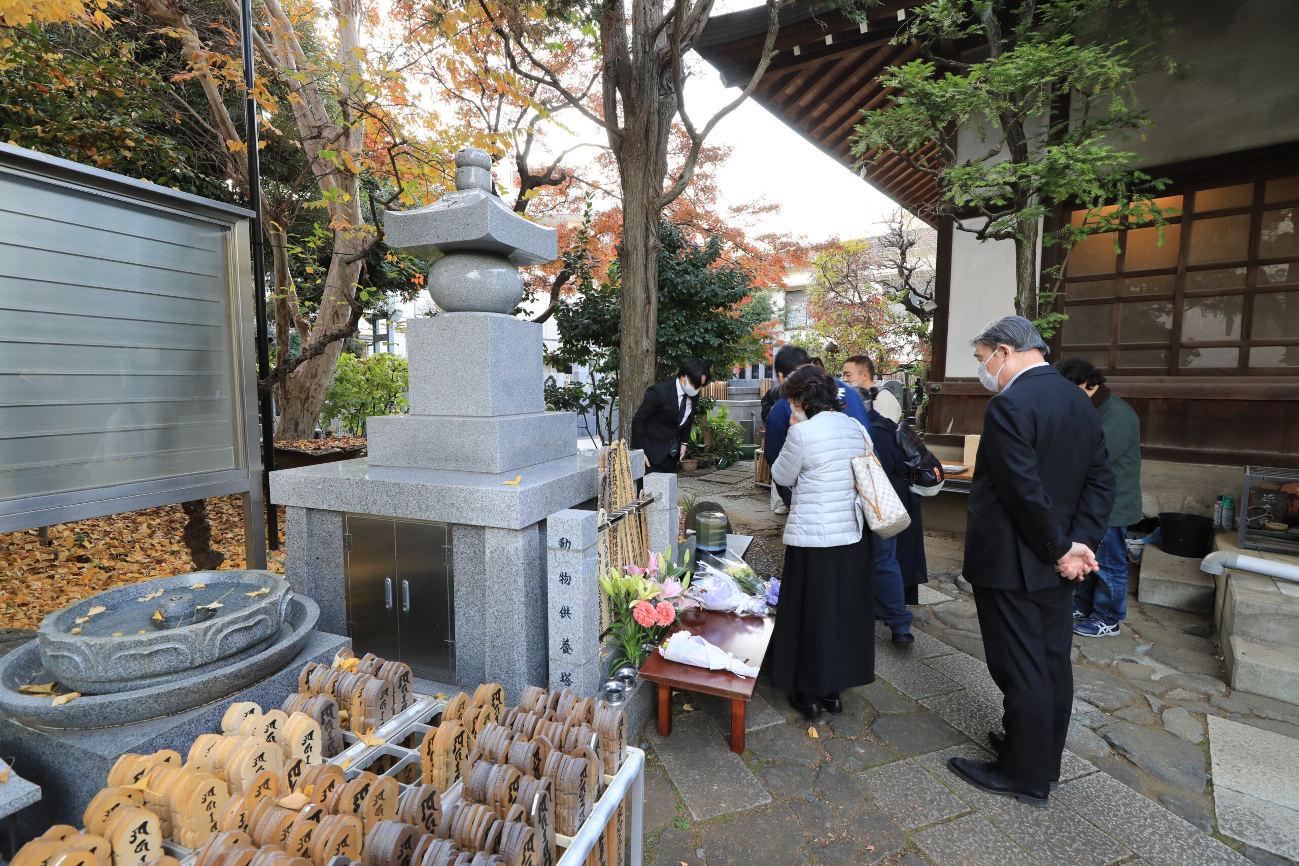 感応寺本堂前の動物供養塔は24時間お参りすることができます。お線香・お花等をお供えすることもできます。